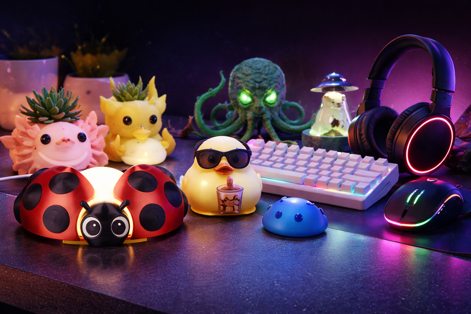 Browse our full collection of 3D printed desk accessories, collectibles, and statement pieces. Whether you're upgrading your gaming station or adding character to your workspace, there’s something built for your style.