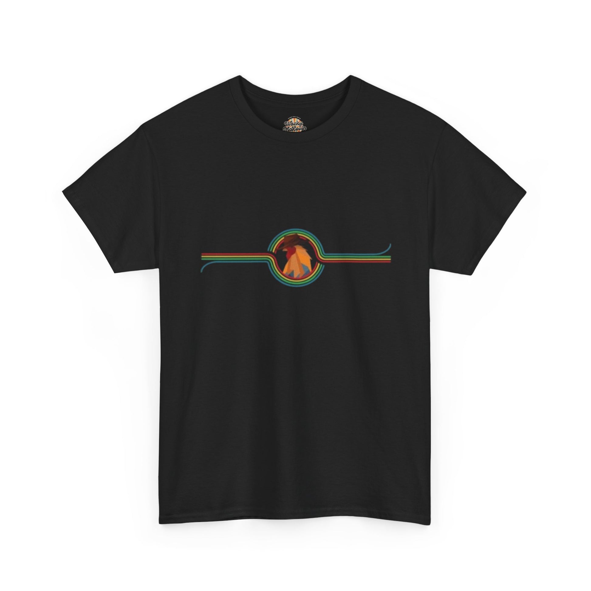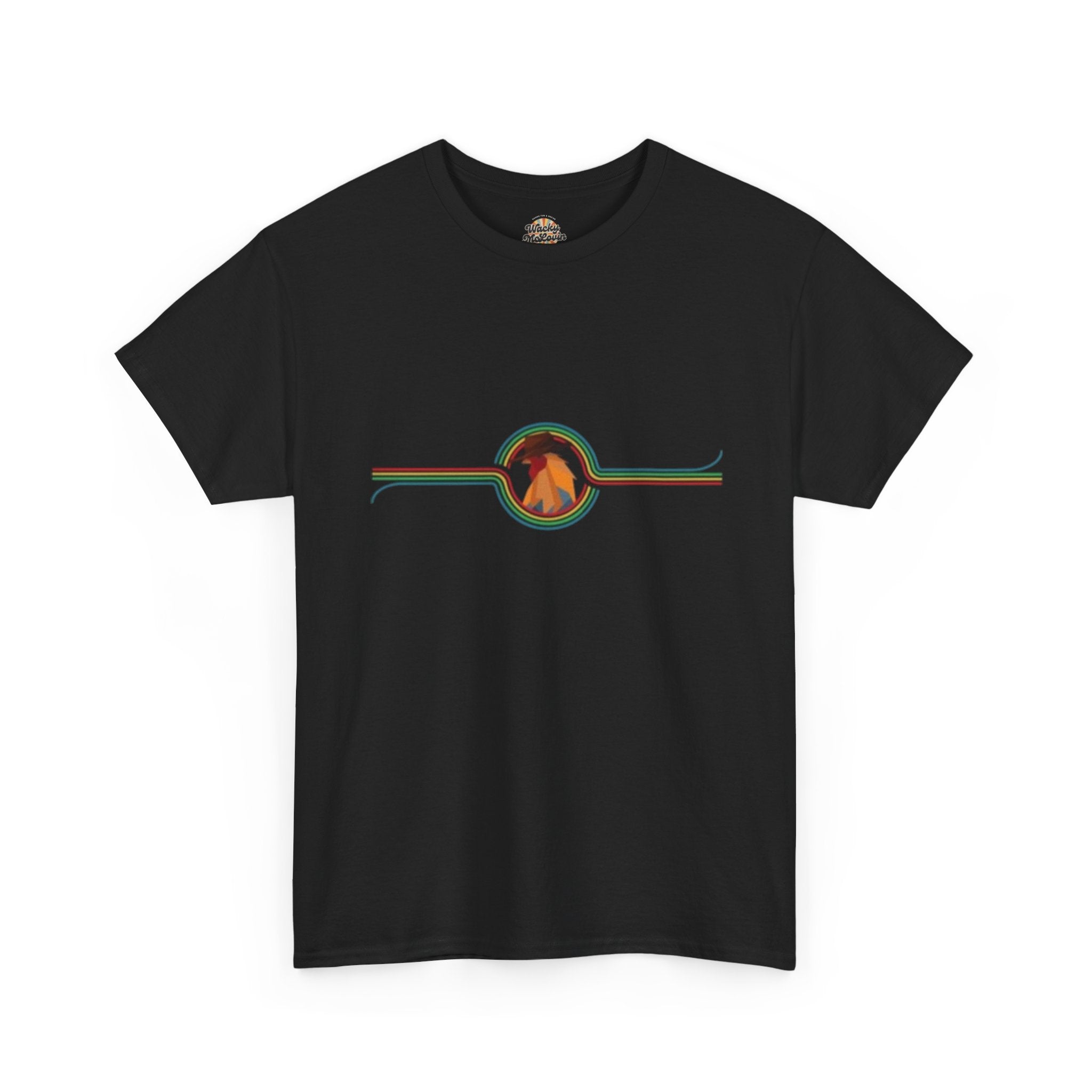 This sleek black tee features a clean retro stripe design running straight through a bold circular Arc Raiders emblem. It’s giving old-school console startup screen… but make it modern. No giant loud graphics. No “trying too hard” vibes. Just smooth, nostalgic arcade energy.