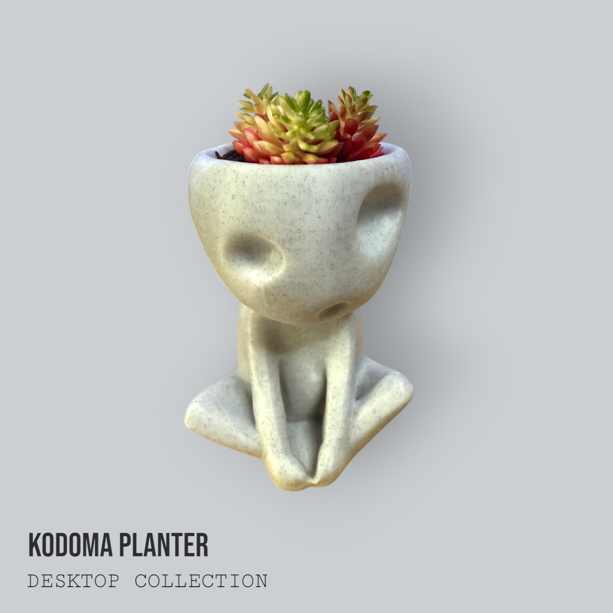 Invite a gentle forest spirit to watch over your workspace. Sculpted in true Studio-Ghibli fashion, this Kodama's head doubles as a 2½-inch-wide planting cup, perfect for succulents, cacti, or air plants. We print it in premium marble-fill PLA, so every planter shows natural stone-like flecks without the weight (or price) of concrete. A hidden drainage hole and matching plug allow you to choose between desktop-safe and free-draining modes. Handmade in Oregon and shipped within three business days.