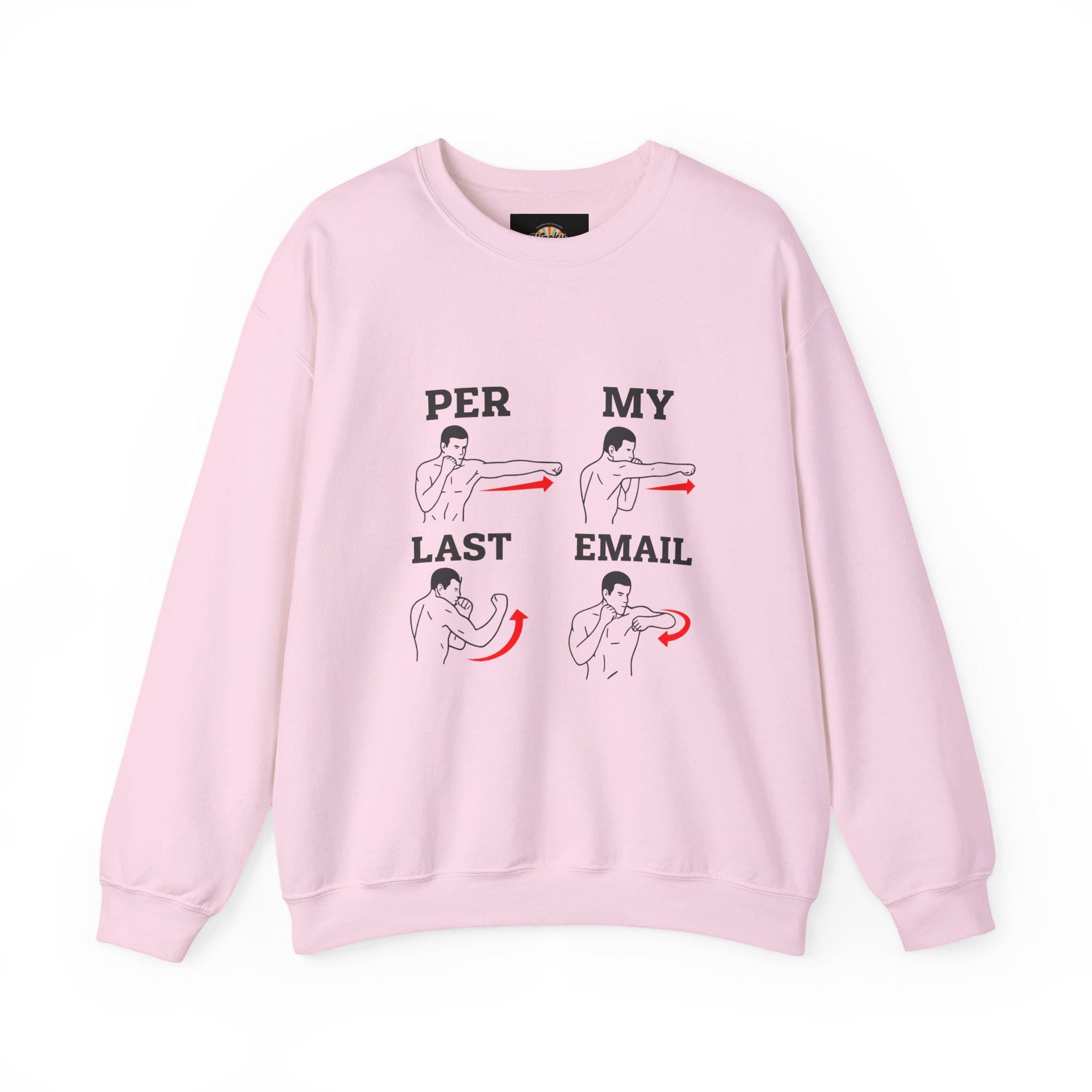 This cozy crewneck brings humor and calm to the everyday inbox grind. Soft, slightly structured, and roomy in the body, the sweatshirt features a minimalist illustrated design that walks through a gentle sequence of gestures with a cheeky line: “PER MY LAST EMAIL.” It reads like a private joke between coworkers — dry, patient, and quietly pointed — making it easy to wear on casual office days, long commutes, or slow weekend mornings. The fabric has enough weight to feel substantial without being stiff; the ribbed collar and cuffs hold their shape after wash. Subtle embroidery placement options add a handcrafted touch, while tear-away labeling keeps the neck itch-free. Ethically sourced cotton and OEKO-TEX certified dyes mean you can reach for it without a second thought.