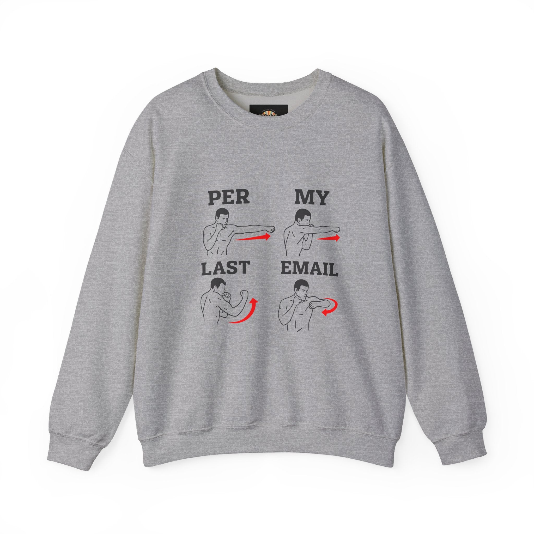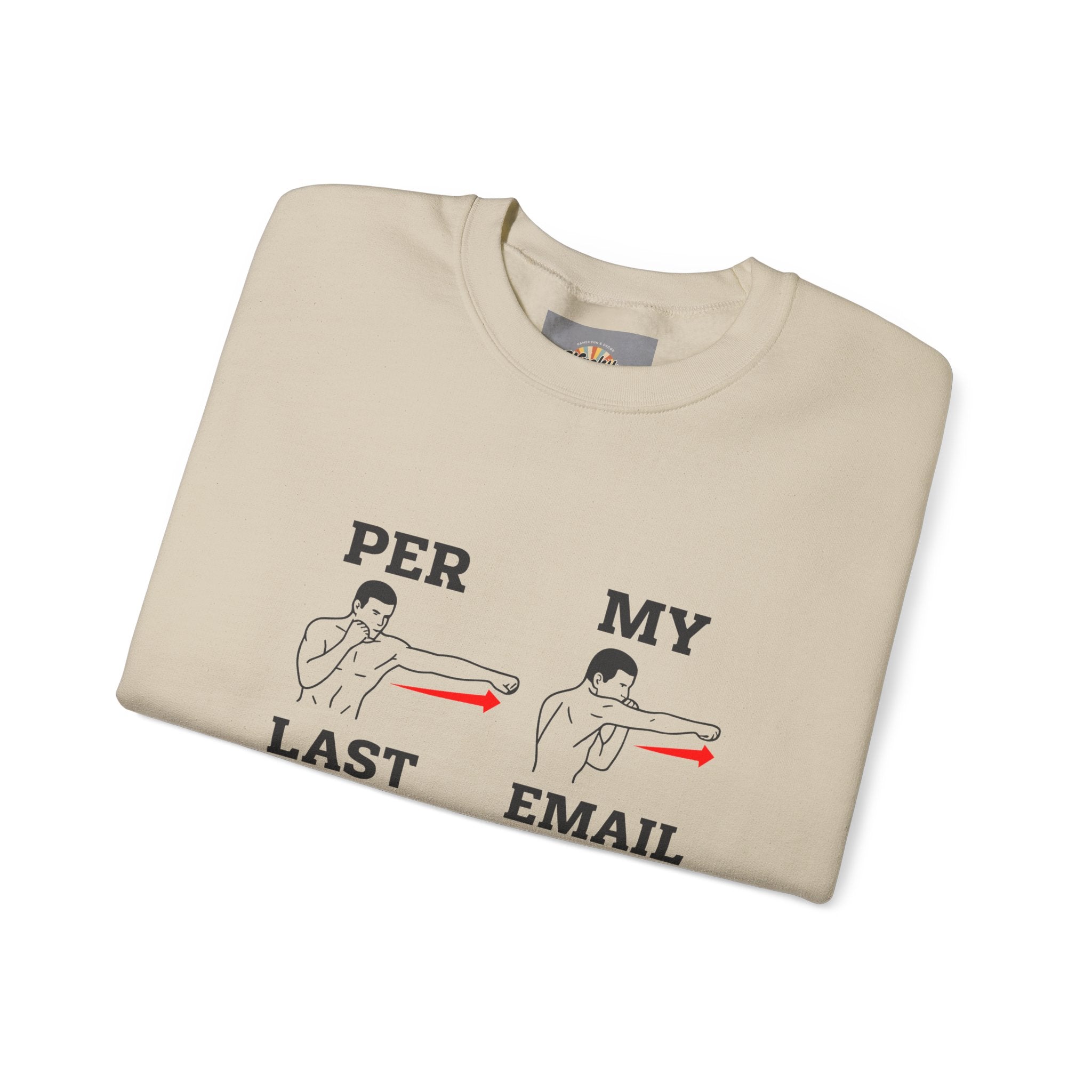 This cozy crewneck brings humor and calm to the everyday inbox grind. Soft, slightly structured, and roomy in the body, the sweatshirt features a minimalist illustrated design that walks through a gentle sequence of gestures with a cheeky line: “PER MY LAST EMAIL.” It reads like a private joke between coworkers — dry, patient, and quietly pointed — making it easy to wear on casual office days, long commutes, or slow weekend mornings. The fabric has enough weight to feel substantial without being stiff; the ribbed collar and cuffs hold their shape after wash. Subtle embroidery placement options add a handcrafted touch, while tear-away labeling keeps the neck itch-free. Ethically sourced cotton and OEKO-TEX certified dyes mean you can reach for it without a second thought.